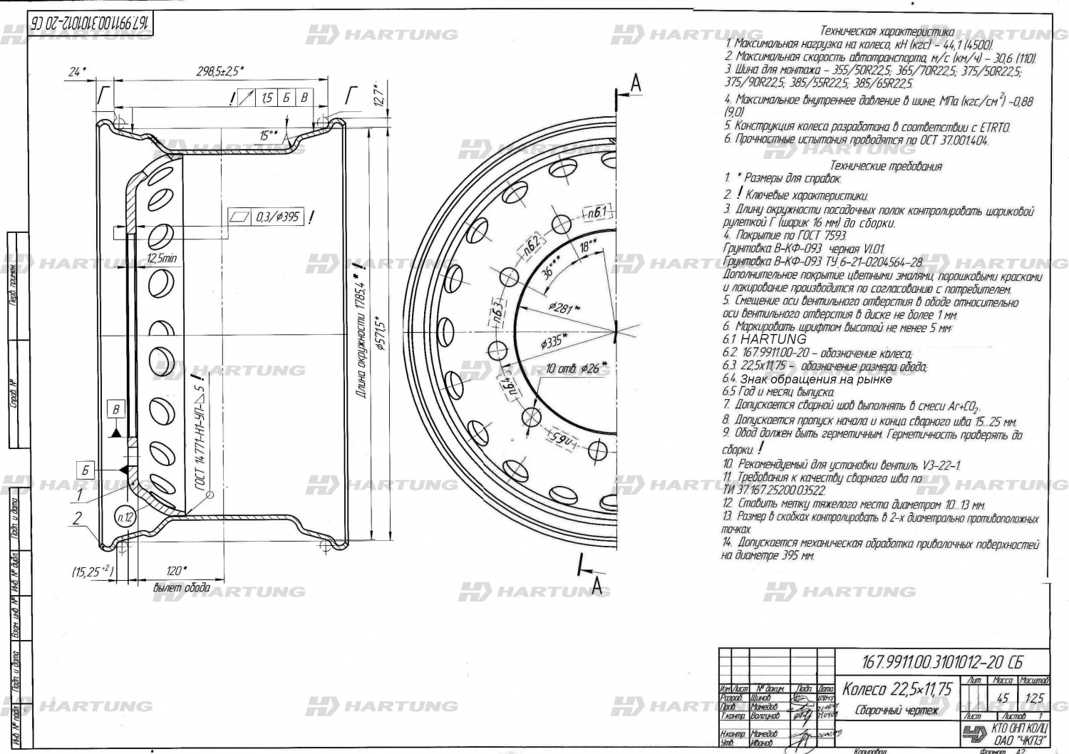 Грузовые диски 11.75*22.5 10х335/281/120 HARTUNG Overload (9911-21) в Екатеринбурге